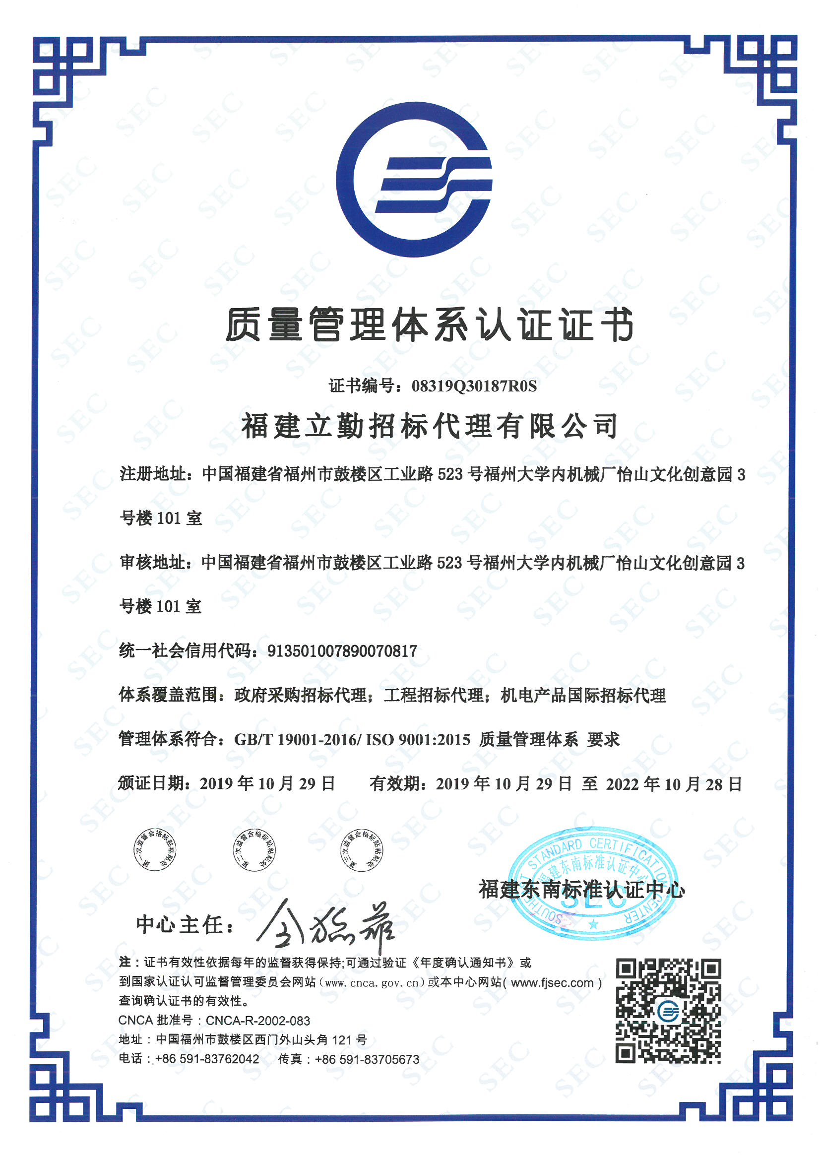 您當前的位置:首頁 >> 走進立勤 >> 資質證書